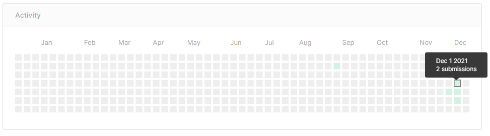 세로칸은 7개로 일주일을 의미하며 제출을 한날은 민트색으로 표시되며 제출일과 제출건수가 표시된다.