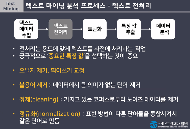 텍스트 마이닝 분석 프로세스(텍스트 전처리)