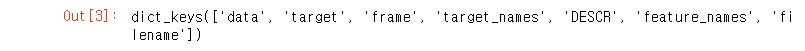 - iris데이터셋 iris변수에 저장후 iris 데이터의 키값 확인하기